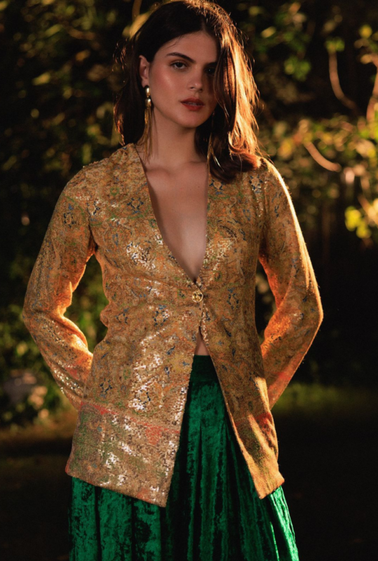 Golden Sequin Plunge Jacket