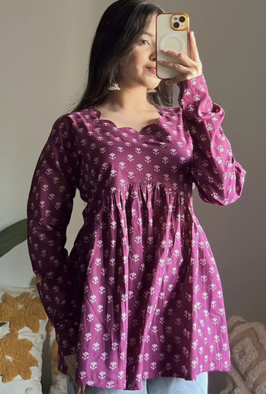 Women’s Purple Printed Peplum Cotton Top