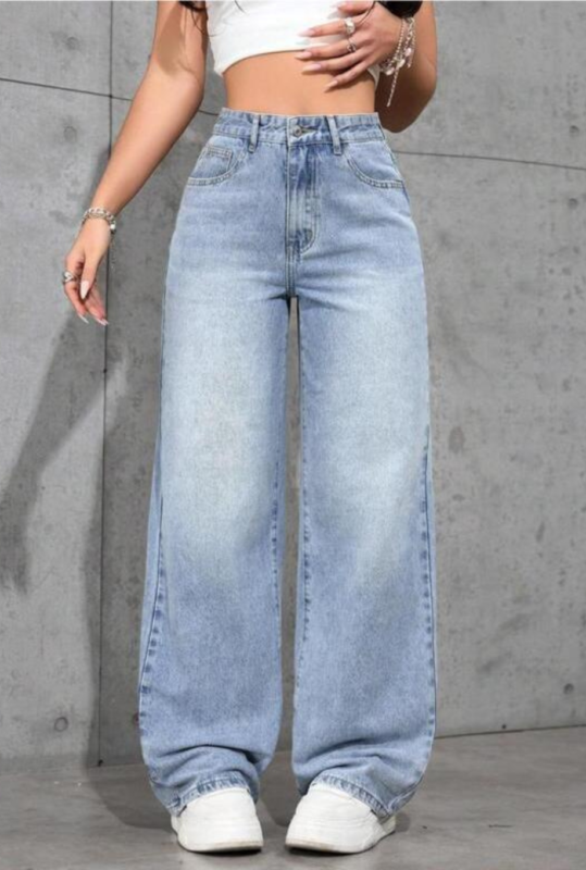 High-Rise Light Wash Wide-Leg Jeans