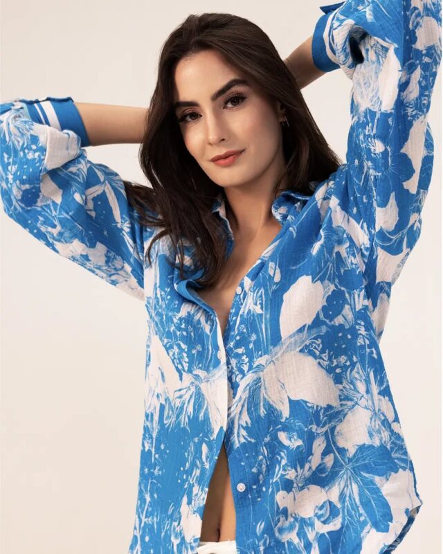 Blue Floral Shirt & White Shorts