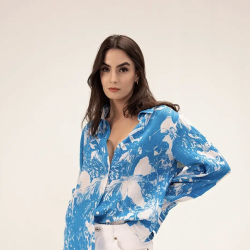 Women’s Blue Floral Printed Cotton Tunic Top