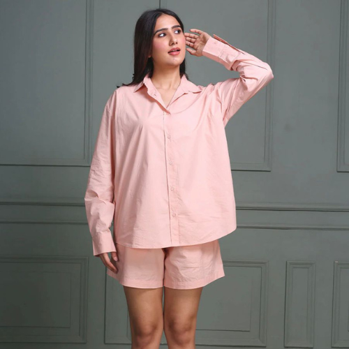 Women’s Solid Pink Shirt & Shorts Co-Ord Set