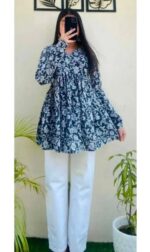 Upgrade your everyday style with this blue floral printed tunic top. Designed with a relaxed fit and full sleeves, it’s made from soft, breathable cotton—perfect for casual wear, office days, or daily comfort with effortless elegance.