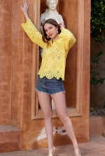 Brighten up your summer style with this yellow schiffli embroidered cotton top. Designed with delicate cutwork detailing and a comfortable fit, it’s perfect for casual outings, vacations, and daytime looks.